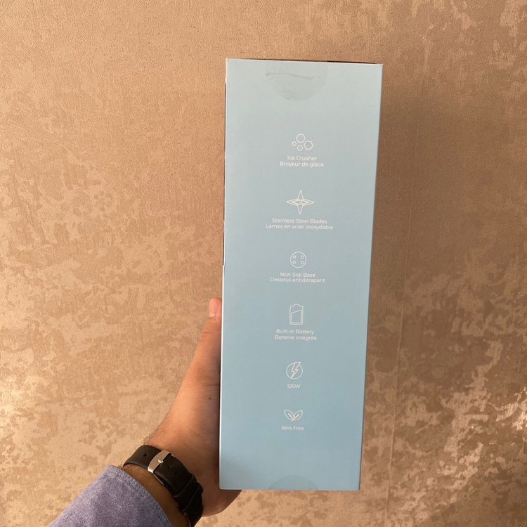شیکر پاورولوژی مدل شارژی 126W Portable گنجایش 0.45 لیتر با تیغه 6 جهته استنلس استیل است که با استفاده از موتور 126 وات که در این محصول قرارداده شده میتواند به راحتی یخ را بدون استفاده از مایعات برای شما خرده کند و شما می توانید تمامی اسموتی ها، شیک ها و نوشیدنی های بر پایه یخ و حتی دانه های سخت مانند دانه فلفل سیاه یا زنجبیل یا جوز هندی و ... با این محصول درست کنید. این محصول از دو باتری لیتیوم پلیمر 2500 میلی آمپر استفاده میکند که در مجموع 5000 میلی آمپر قابلیت ذخیره سازی انرژی دارد و با هر بار شارژ شما می توانید 15 الی 20 بار از این محصول استفاده کنید. دور موتور این محصول 16500 دور بر دقیقه است که تیغه استیل ضد زنگ این مخلوط کن شارژی را با سرعت بالایی به حرکت در می آورد تا تمام محتوای داخل مخزن شیشهای این شیکر را به خوبی مخلوط کرده و یک مخلوط یک دست و نرم را برای شما به ارمغان بیاورد. محفظه شیشه ای مخلوط کن این دستگاه با ظرفیت حجم 450 میلی لیتر و قابلیت شستشوی راحت به شما قابلیت خرد کردن انواع دانه های مختلف مثل گرانول فلفل سیاه ، دانه قهوه و غلات و همچنین چاشنی های سخت غذایی مانند زنجبیل ، سیر ، چوب دارچین ، تخم کتان و ... را می دهد و همچنین در مدت بسیار کوتاهی آبمیوهای طبیعی را برایتان آماده میکند و با توجه به شارژی بودن و قابل حمل بودن دستگاه می توان در مسافرت و کمپینگ نیز به راحتی از آن استفاده نمود. کلید پاور این مخلوط کن شارژی روی بدنه و در بخش جلویی قرار گرفته است و برای روشن کردن دستگاه باید این دکمه را به مدت 3 ثانیه نگه دارید تا روشن شود ، این دستگاه مود شستشو هم دارد که برای شستشو داخل مخزن باید دکمه پاور را دوبار پشت هم فشار دهد البته باید توجه بکنید در مود شستشو این دستگاه تنها از 20 درصد قدرت خود استفاده میکند و نباید از مود شستشو برای مخلوط کردن استفاده کنید درگاه شارژ این مخلوط کن شارژی از نوع میکرو USB بوده و زمان شارژ آن 2 الی 3 ساعت می باشد