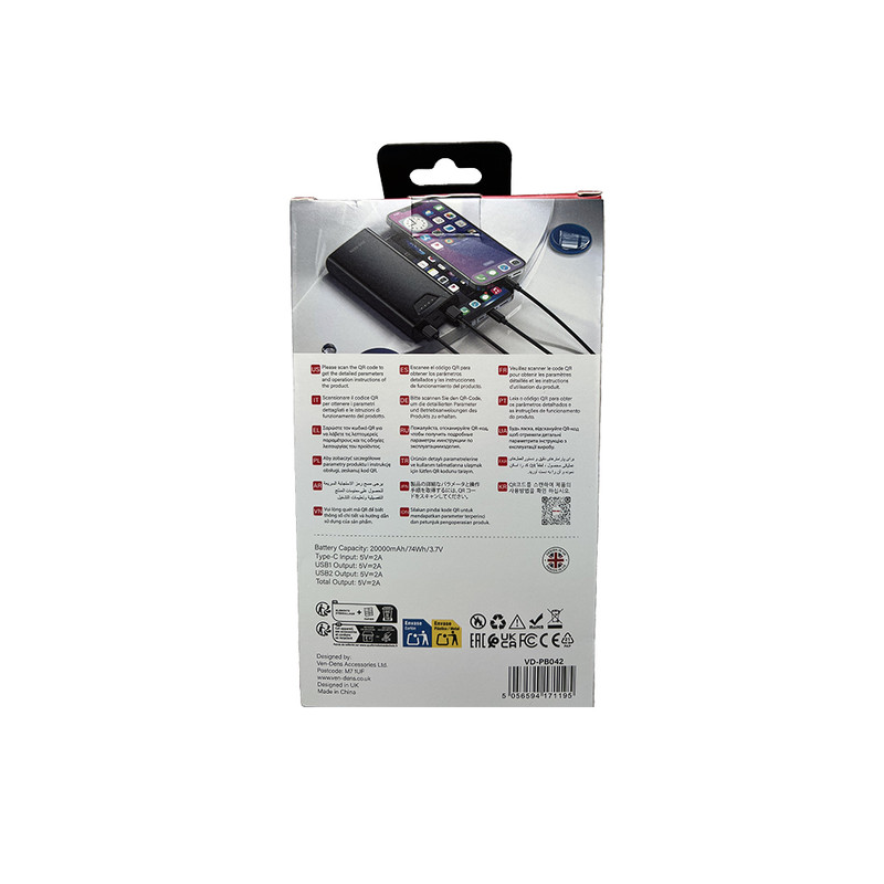پاوربانک 10 وات ون دنس مدل VD-PB042 ظرفیت 20000 میلی آمپر ساعت