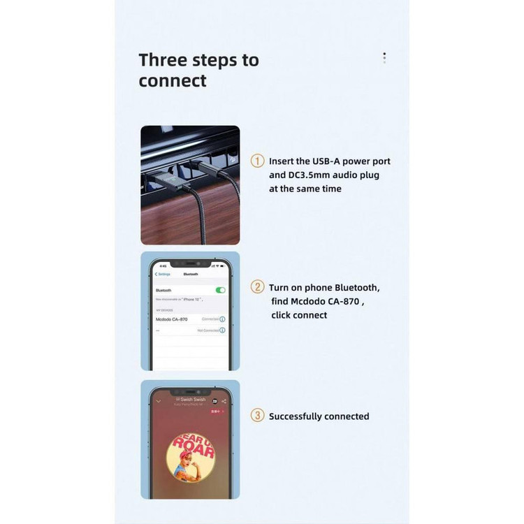اگر از نبود گزینه بلوتوث روی ضبط ماشین یا اسپیکر خانه خود ناراحت هستید و نگران هستید که یک ضبط بلوتوثدار جدید چقدر برایتان هزینه برخواهد داشت و دوست دارید، آهنگهای روی گوشی خود را با کیفیت بالا روی ضبط خودرو یا اسپیکرتان پخش کنید، ما به شما «گیرنده بیسیمAUX مدل CA-8700 مکدودو» را پیشنهاد میدهیم. میتوانید با این گیرنده و با کاربری بسیار ساده، اسپیکر، ضبط خودرو و یا هر دستگاه پخش دیگری که ورودی AUX دارد را به یک پخش بیسیم تبدیل کرده و بهراحتی موسیقیهای مورد علاقه خود را از طریق گوشی همراهتان، روی آنها پخش کنید. کوچکی و سبکی گیرنده CA-8700، این امکان را به شما میدهد که به راحتی همهجا آنرا بههمراه داشته باشید. چیپ با کیفیت بالا و مصرف انرژی بسیار پایین، صدایی با کیفیت و پایدار را تا فاصله 5 متر برایتان به ارمغان میآورد. برق آن از طریق پورت USB روی دستگاه تامین میشود. میکروفن داخلی آن، امکان تماس هندزفری HD را در هنگام رانندگی یا کار، برایتان فراهم میکند. با کانکتور آبکاری شده با طلا دیگر نگران اکسیداسیون و افت کیفیت صدا نخواهید بود. کابل تلفنی مانند آن که در حالت طبیعی 45 سانتیمتر بوده تا 120 سانتیمتر قابلیت کشسانی دارد. همچنین این کابل از مواد TPE ساخته شده که سازگار با محیط زیست میباشد.