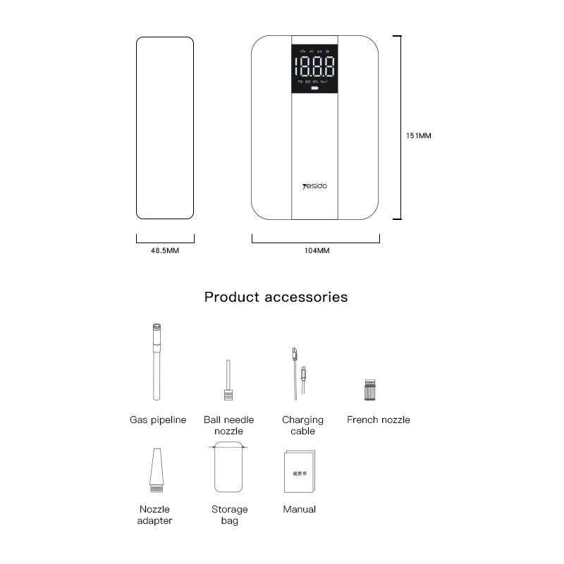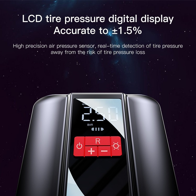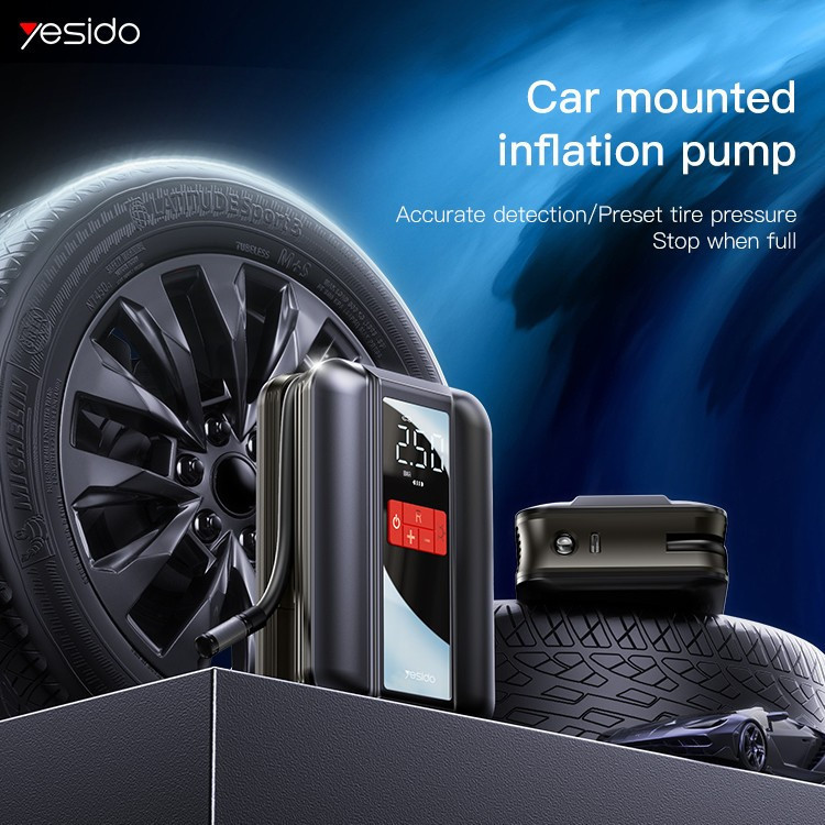 پمپ باد یسیدو Yesido VC04 مجهز به یک باتری داخلی لیتیوم یونی 4000 میلی آمپر ساعتی است که به آن امکان می دهد بدون سیم کار کند. این تضمین می کند که حتی در شرایطی که دسترسی فوری به منابع برق وجود ندارد، می توانید از آن استفاده کنید. پمپ باد Yesido VC04 میتواند لاستیک را تا حداکثر فشار 150 PSI باد کند، که آن را برای طیف گستردهای از کاربردها، از جمله لاستیکهای ماشین و دوچرخه که نیاز به فشار بالا دارند، مناسب میکند. این دستگاه دارای یک صفحه نمایش LCD دیجیتال است که اطلاعات لحظه ای در مورد فشار فعلی را ارائه می دهد و نظارت و کنترل دقیق فرآیند باد کردن را آسان می کند. این پمپ باد مجهز به عملکرد خاموش شدن خودکار است، به این معنی که پس از رسیدن به فشار از پیش تعیین شده، به طور خودکار باد کردن را متوقف می کند. این ویژگی به جلوگیری از باد بیش از حد کمک می کند و ایمنی در حال باد شدن را تضمین می کند. دارای یک چراغ قوه LED داخلی است که می تواند در شرایط کم نور مفید باشد و برای مواقع اضطراری یا استفاده در شب مفید باشد.