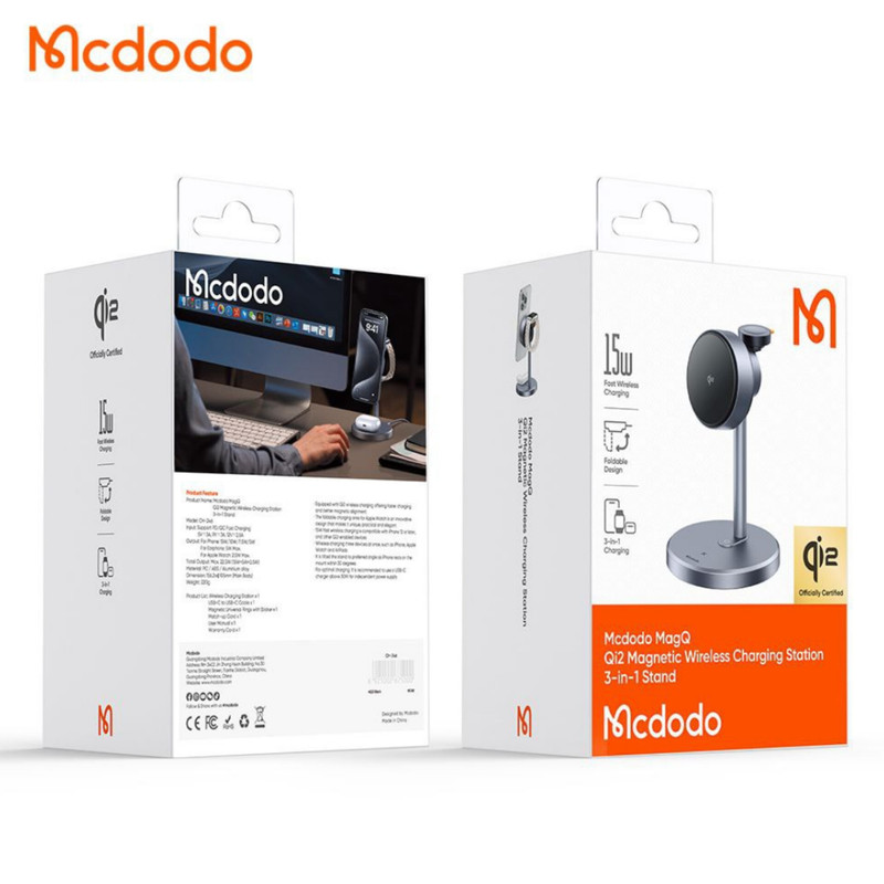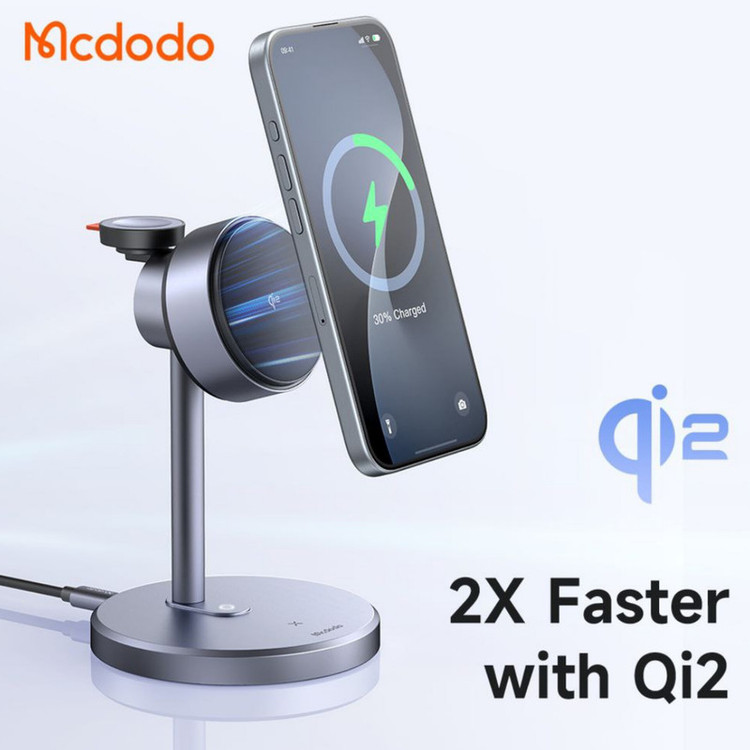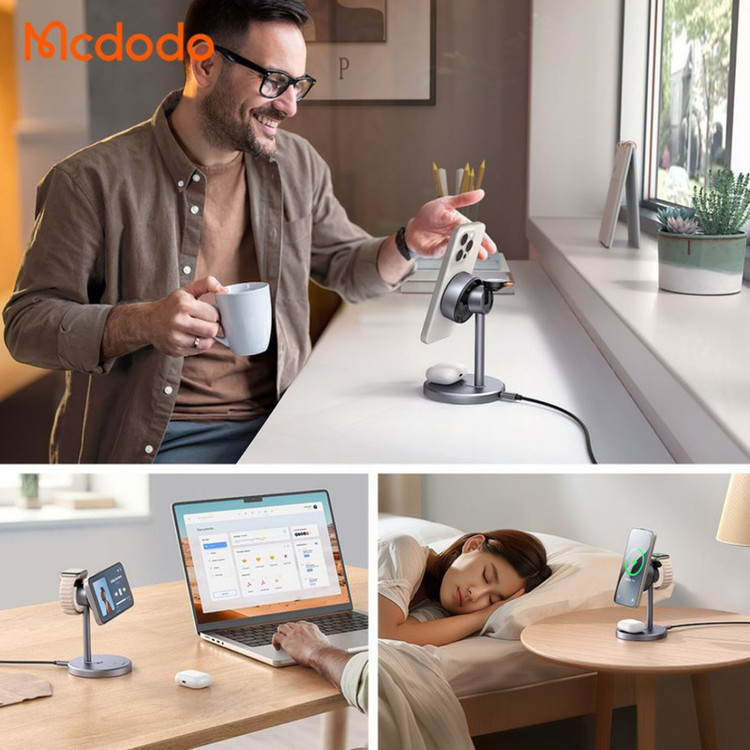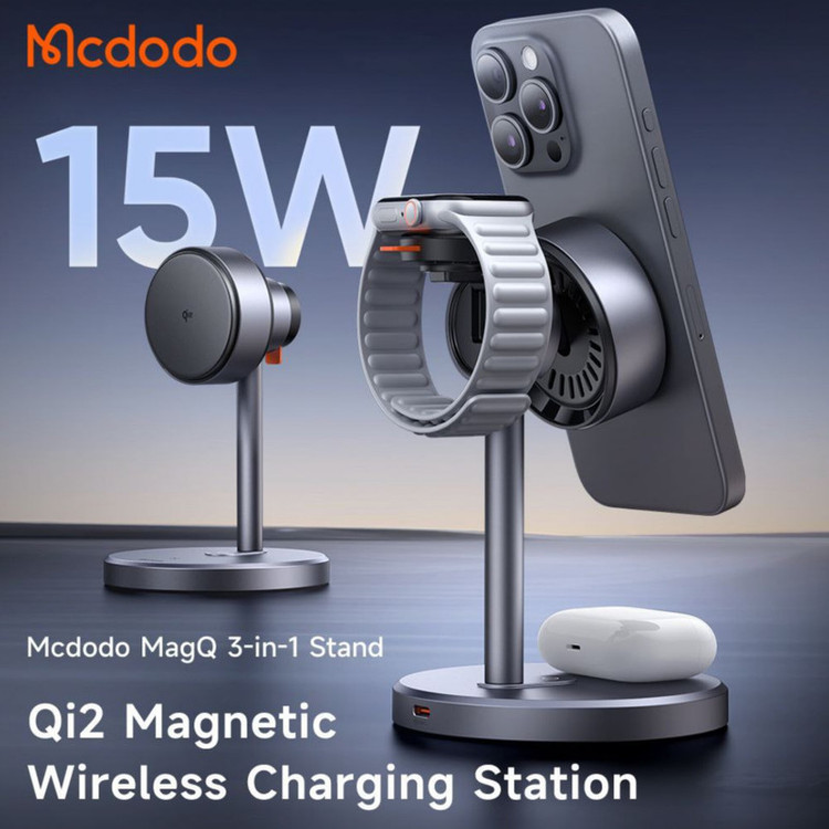 شارژر وایرلس سه کاره مک دودو یک محصول چندمنظوره برای کاربران محصولات اپل و دستگاههای دیگر با قابلیت شارژ وایرلس است. این دستگاه، با تکنولوژی شارژ سریع Qi2 و طراحی مغناطیسی مدرن تولید شده است.