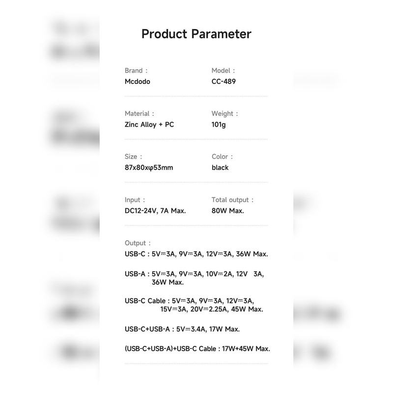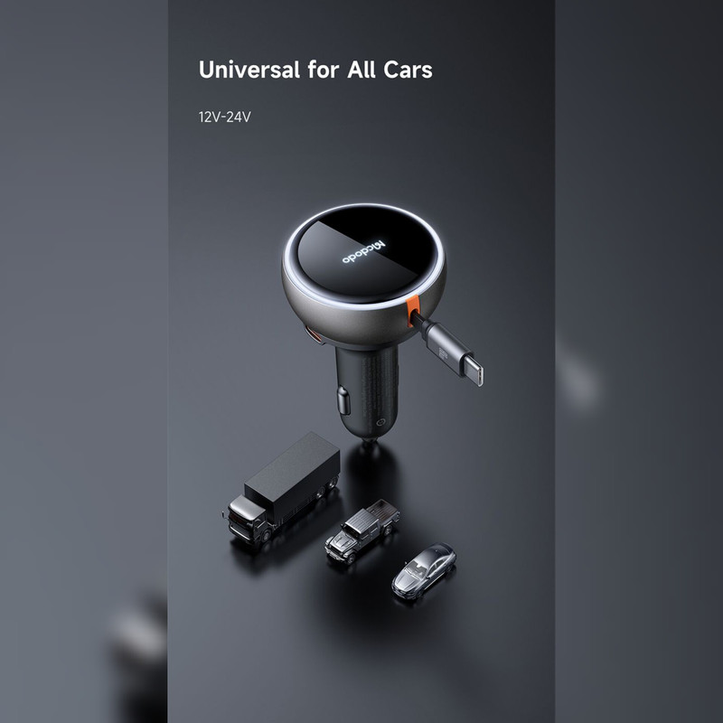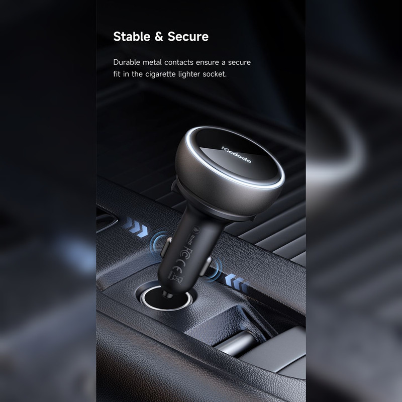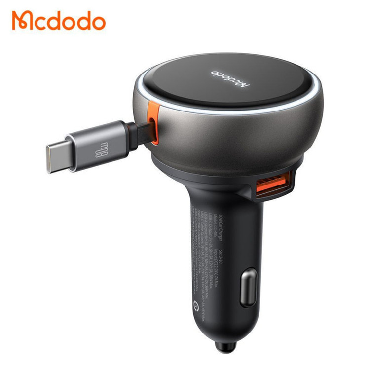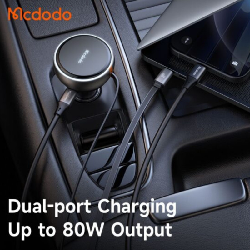 شارژر فندکی ۸۰ وات مک دودو مدل CC-4850 – شارژ سریع سهگانه با کابل جمعشونده Type-C و توان واقعی بالا!