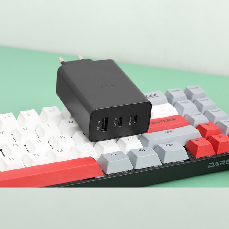 - شارژ همزمان سه دستگاه: مثلاً USB-C1 + USB-C2 + USB-A تا ۳۵ وات + ۲۵ وات + ۵ وات (مجموع ۶۵ وات)